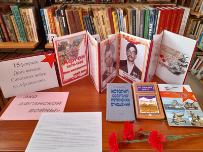 Участникам мероприятий библиотекарь рассказала о причинах ввода советских войск в Афганистан, о том, что через горнило афганской войны прошло огромное количество солдат и офицеров, и, к сожалению, не все вернулись домой. Напомнила о том, что живущим сегодня необходимо помнить о мужестве, стойкости и героизме советских солдат, принимавших участие в военных событиях в Афганистане. Также вспомнили о земляках – участниках боевых действий в Афганистане: Ишкинин Рафис Мухарлямович, Ядгаров Радик Шарифьянович, Яппаров Равшан Зиннурович. На книжно- иллюстративной выставке представлены их фотографии.